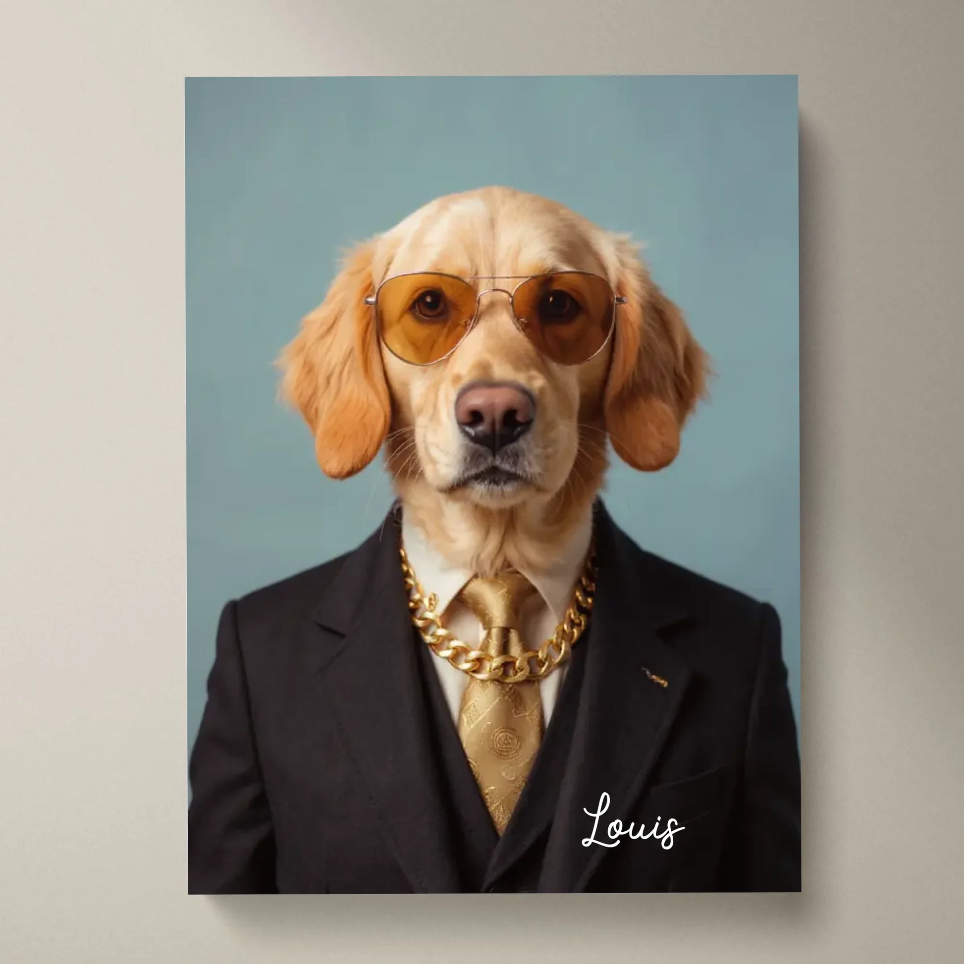 Lustiges Haustier Portrait - Personalisiertes Poster mit Fotoupload in unterschiedlichen Stilen (Hund, Katze im Anzug, als Superheld, Cowboy, etc.)