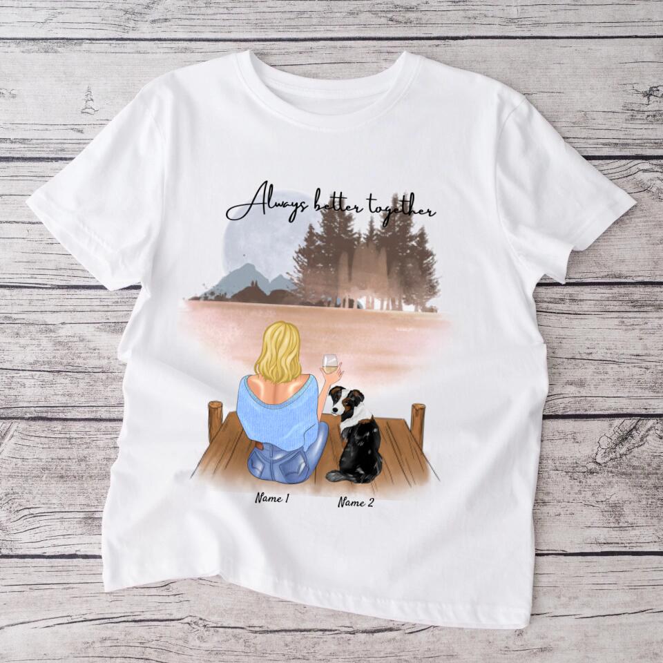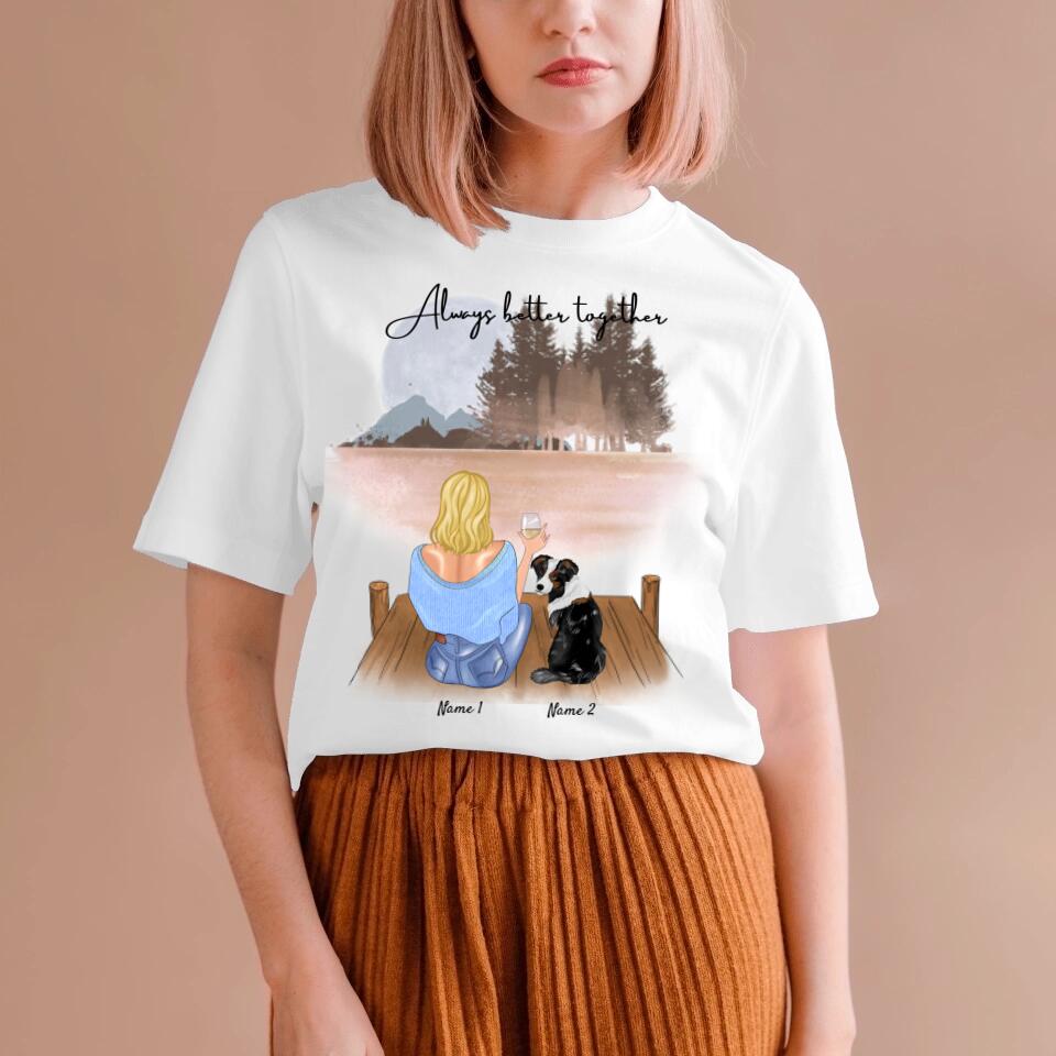 Frauchen mit Haustier & Getränk - Personalisiertes T-Shirt (Hund & Katze)