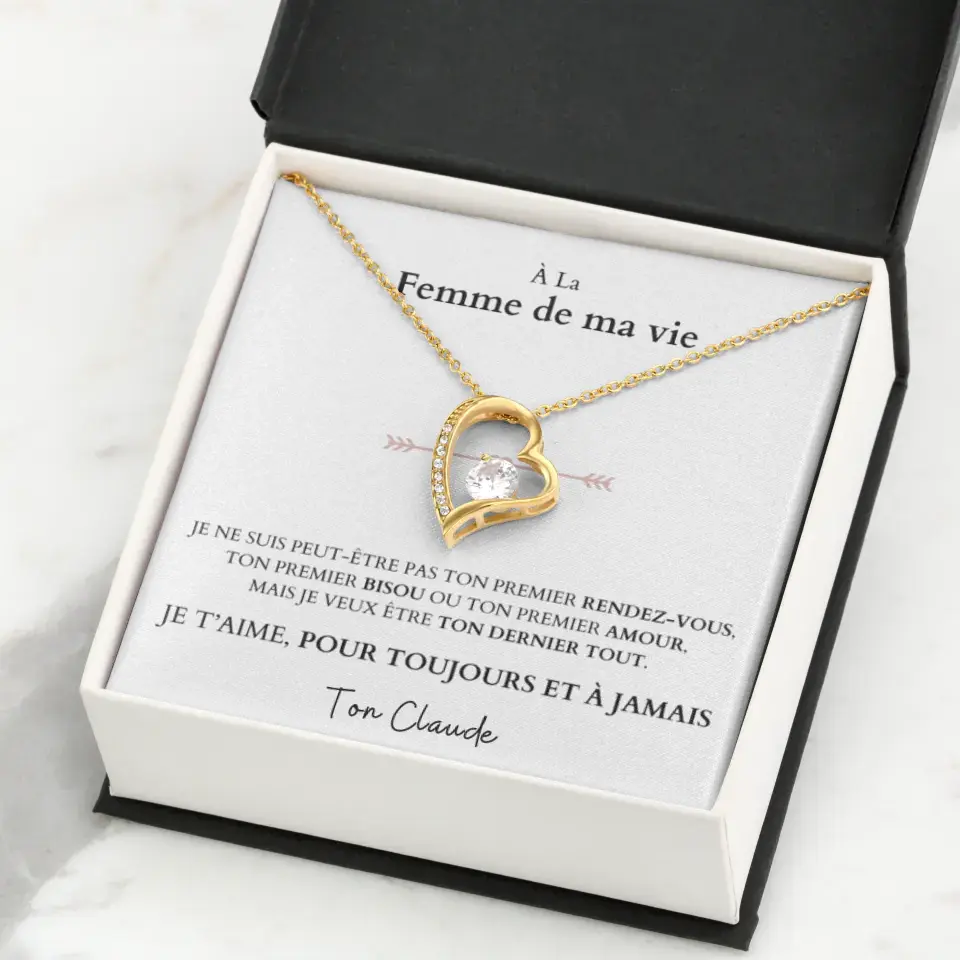 Je t'aime, pour toujours et à jamais - Collier avec pendentif coeur & carte personnalisée