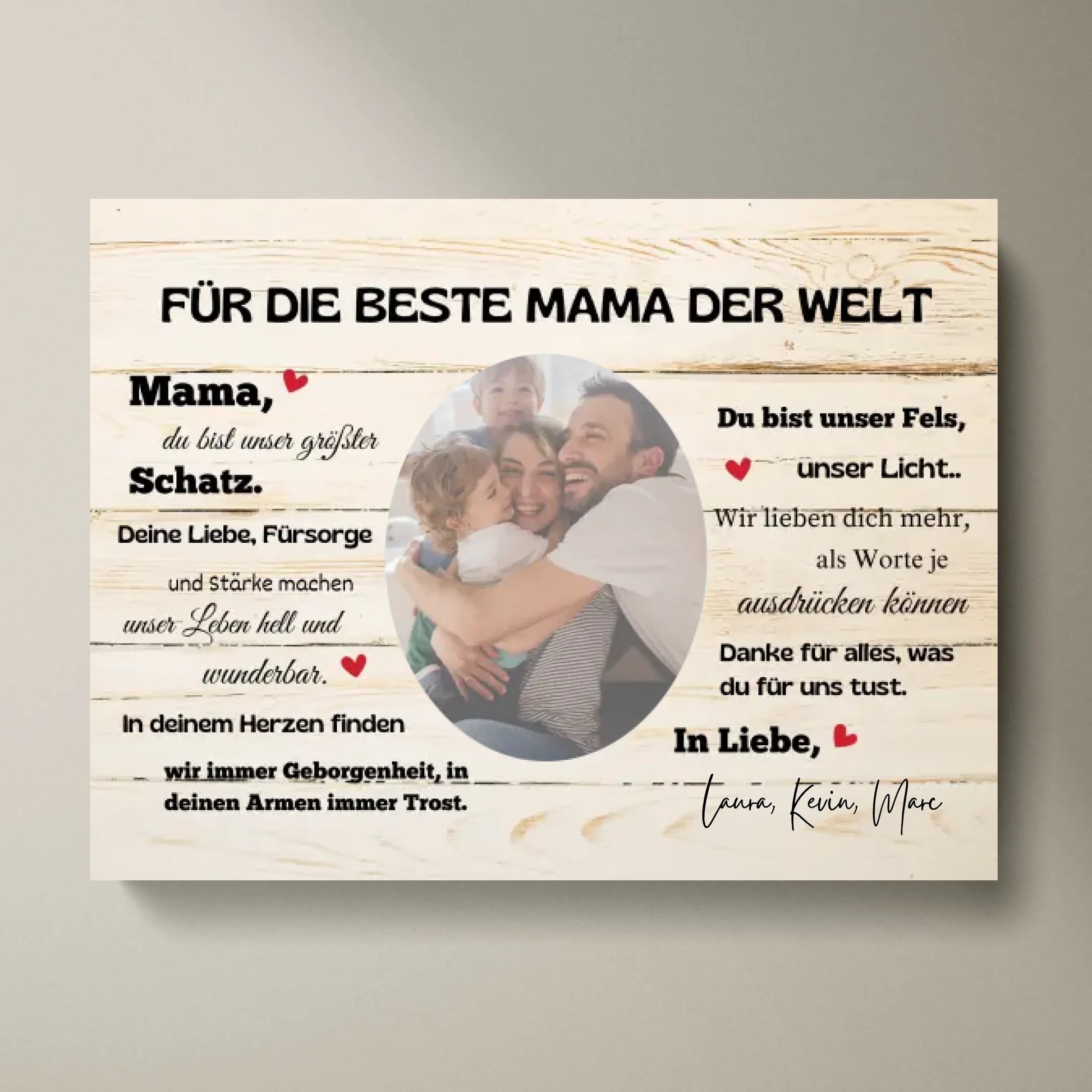 Für die beste Mama der Welt - Personalisierte Foto Leinwand Familie