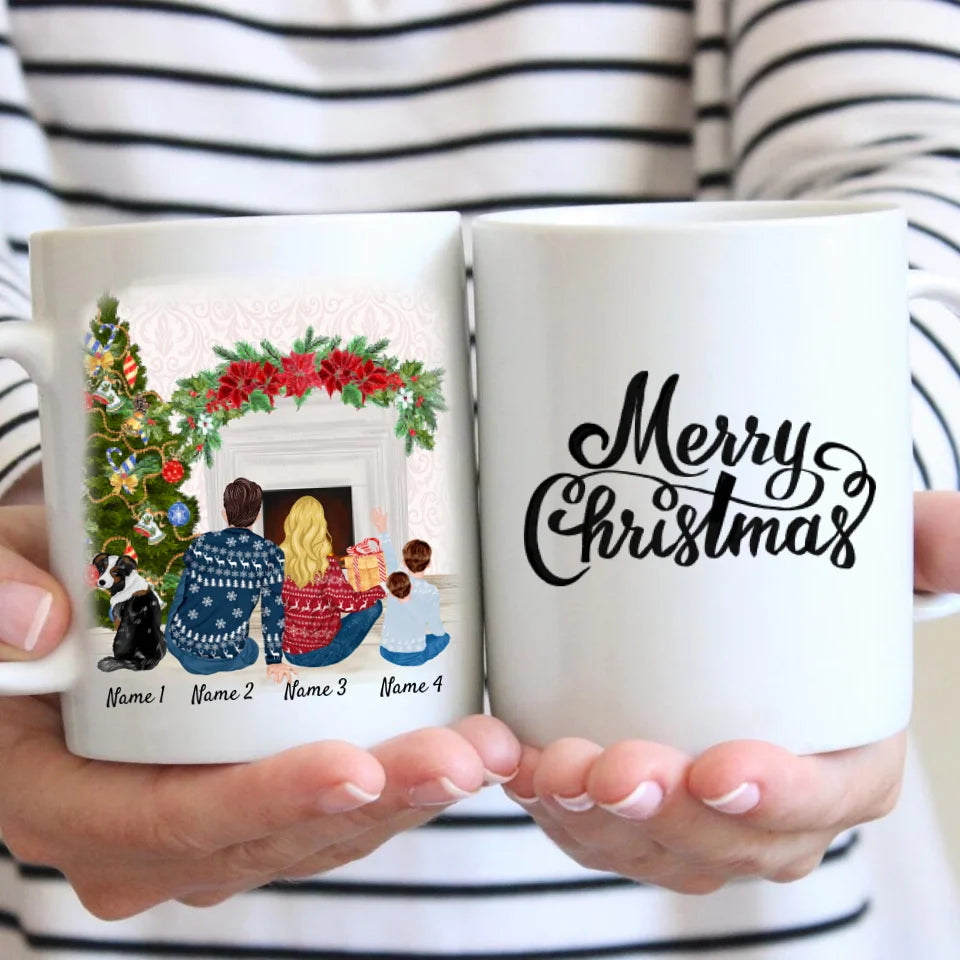 Weihnachten Familie mit Kind & Haustier - Personalisierte Tasse