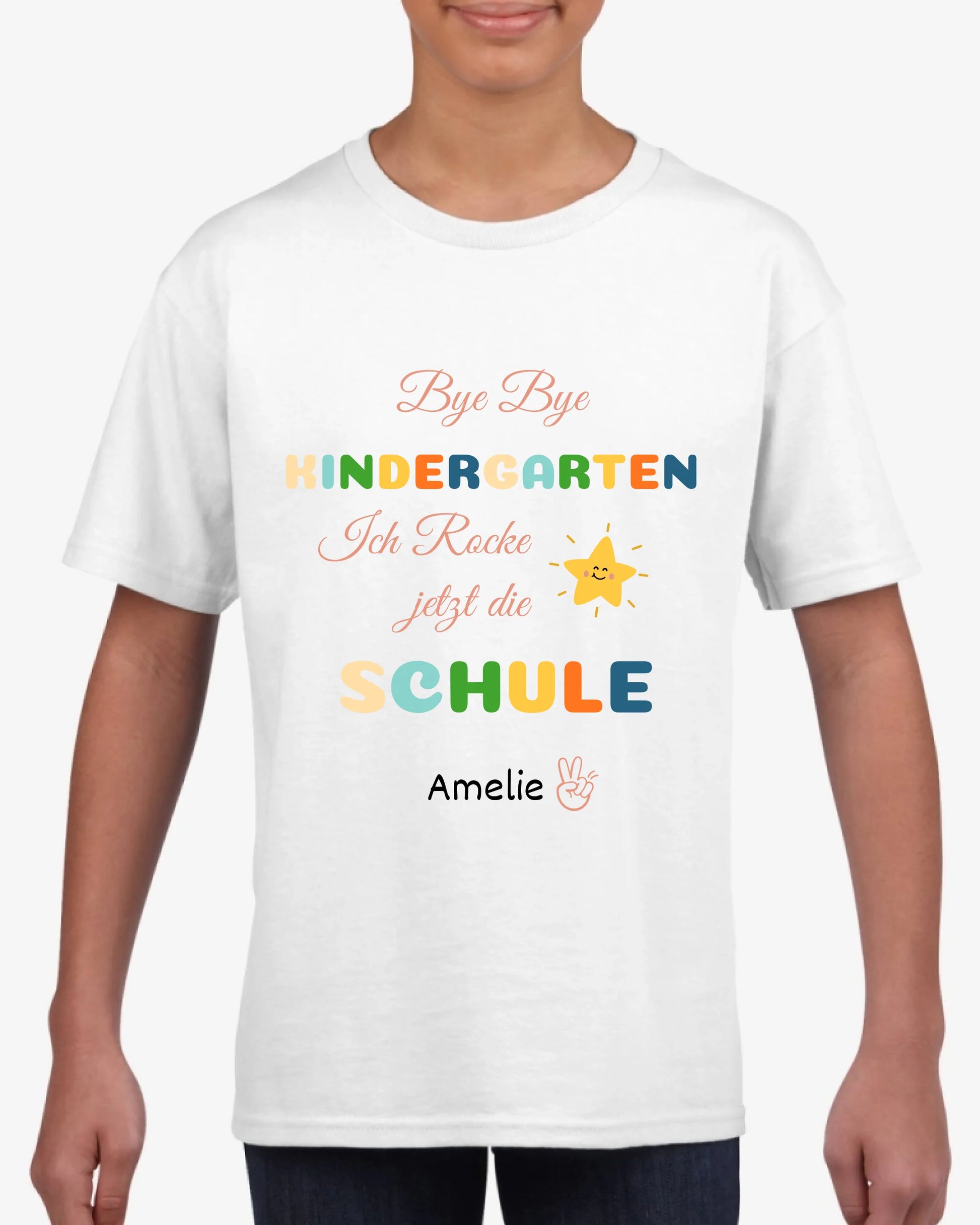 Dag kleuterschool, ik rock nu school - Gepersonaliseerd T-shirt voor kinderen voor hun eerste schooldag (100% katoen)