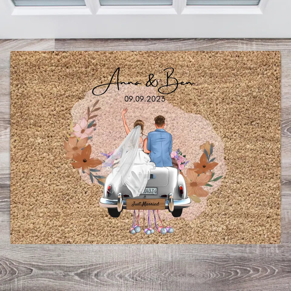 "Just Married" Gepersonaliseerde deurmat voor bruiloft - Voor getrouwde stellen, bruid & bruidegom, huwelijkscadeau, samen thuis - Gefeliciteerd
