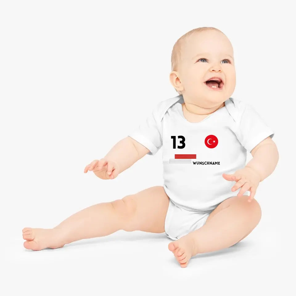 Türkiye Football - Gepersonaliseerd baby rompertje/rompertje, shirt met aanpasbare naam en nummer, babyrompertje van 100% biologisch katoen