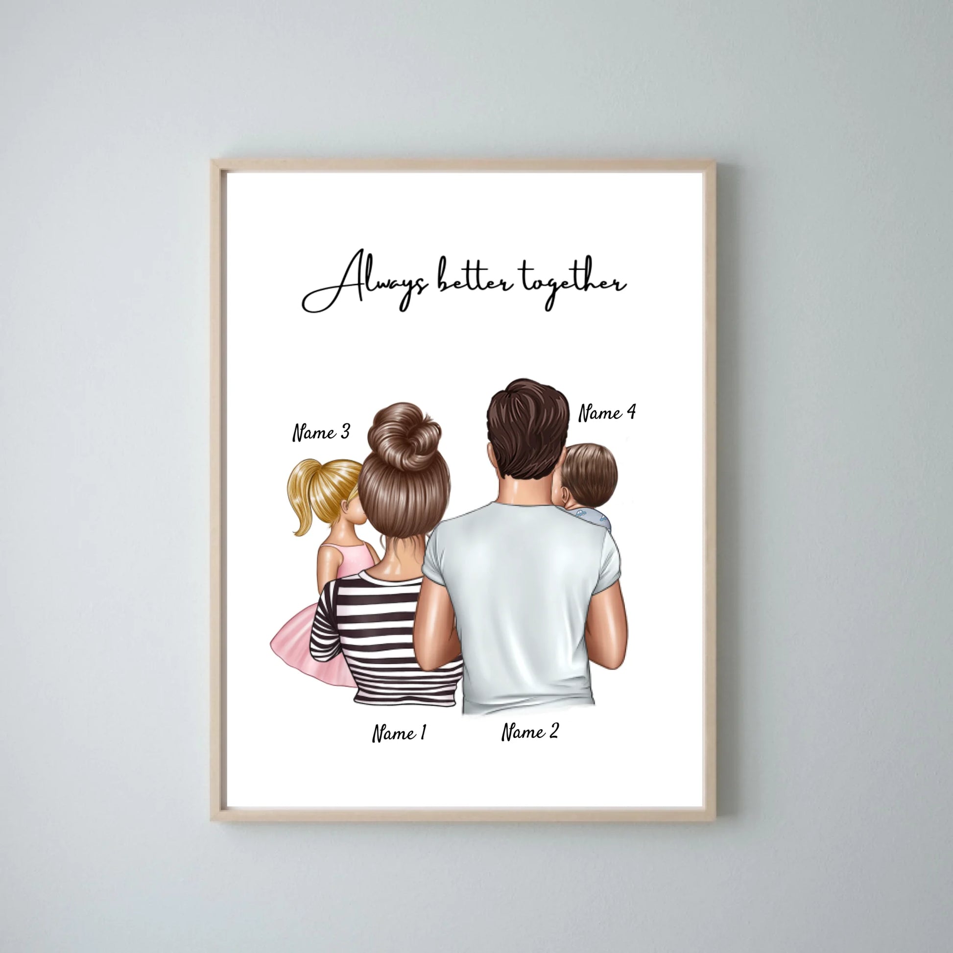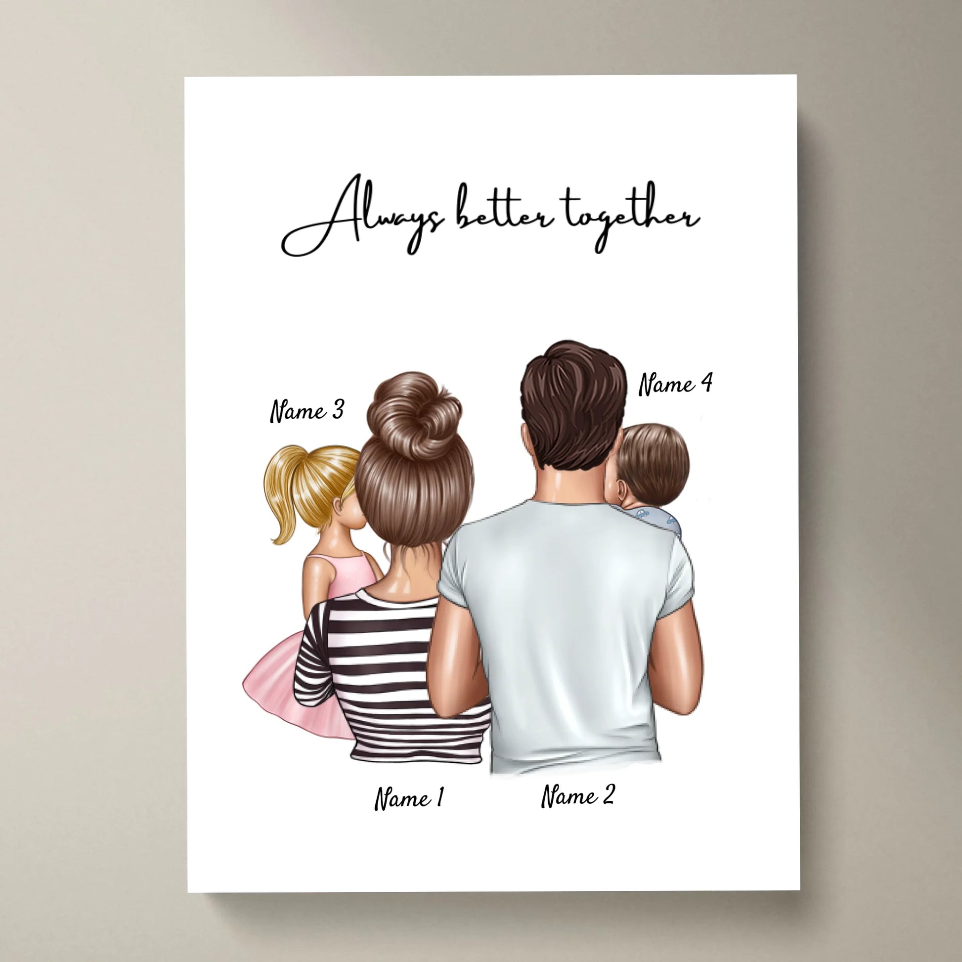 Famille heureuse - Poster Personnalisé (Parents avec 1-3 enfants)