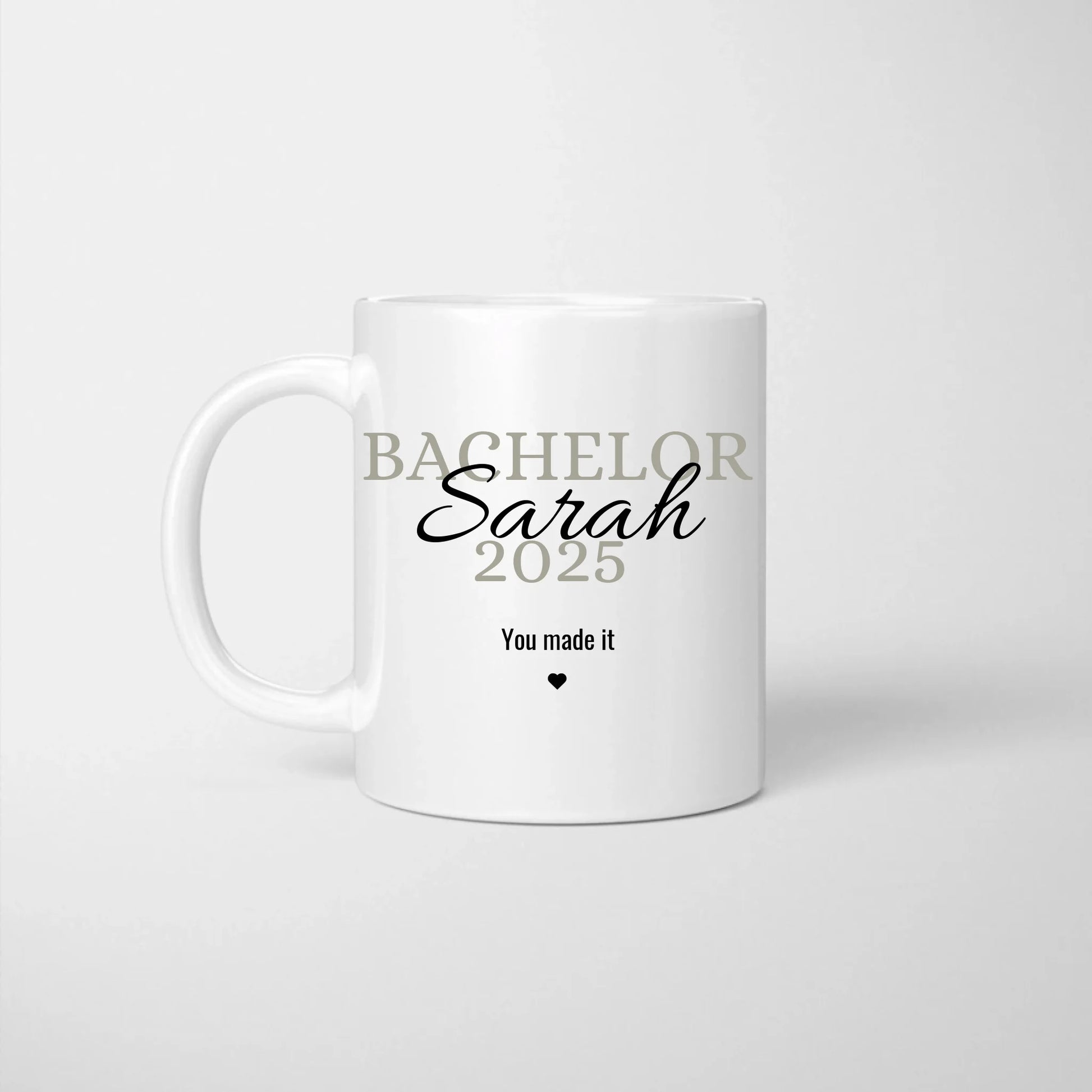 Bachelor Mug 2025 - Gepersonaliseerde mok voor afstuderen, universitaire studies, bachelor, master, opleiding, middelbare school, examen, schoolinschrijving