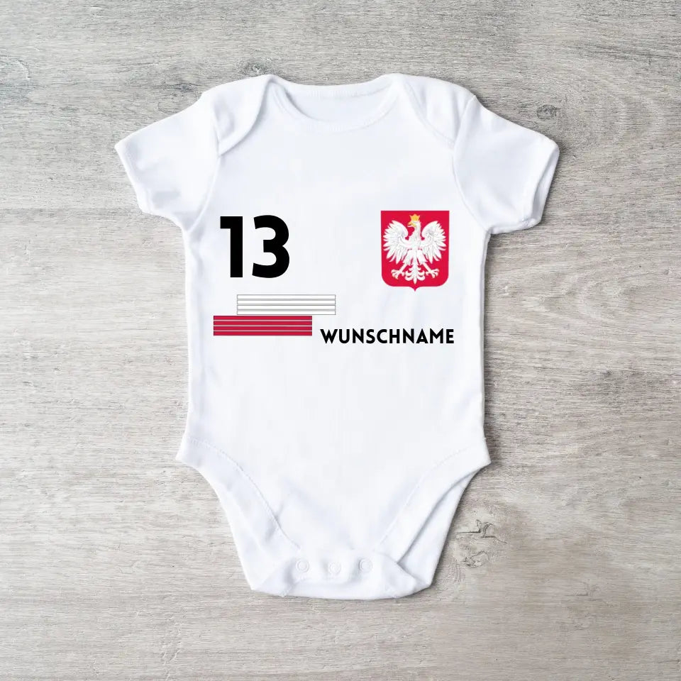 Polen Voetbal - Gepersonaliseerd baby rompertje/rompertje, shirt met aanpasbare naam en nummer, babyrompertje van 100% biologisch katoen