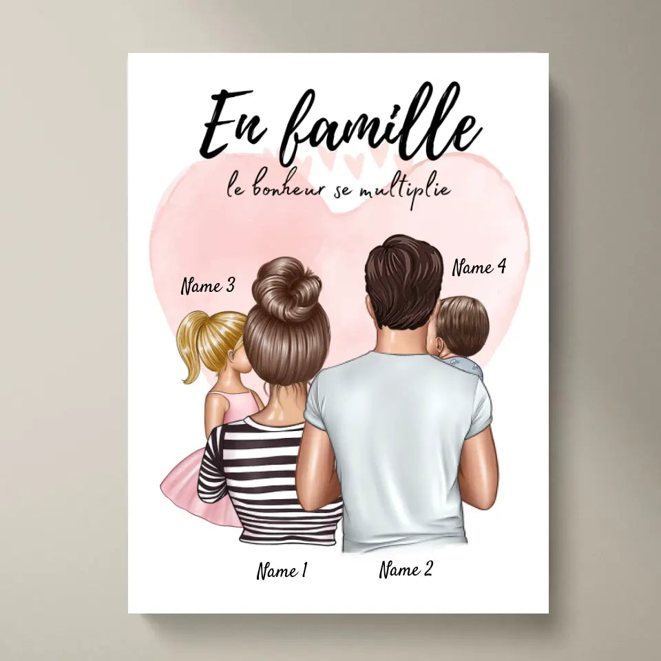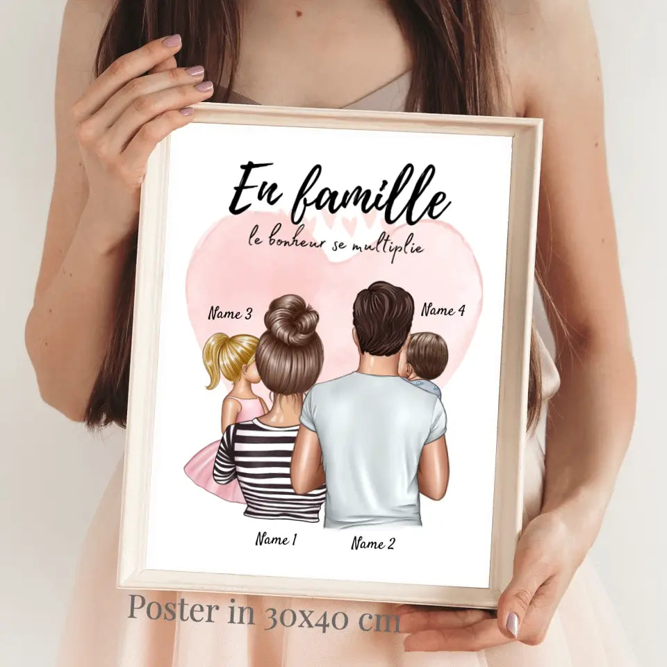 Gelukkig gezin, Famille heureuse - Poster gepersonaliseerd (Ouders met 1-3 kinderen)