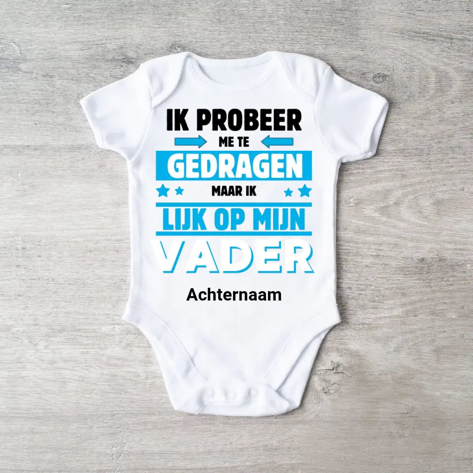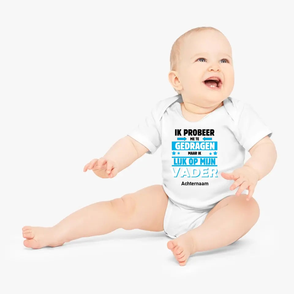 IK PROBEER ME TE GEDRAGEN PAPA - Gepersonaliseerde baby onesie, baby bodysuit 100% biologisch katoen