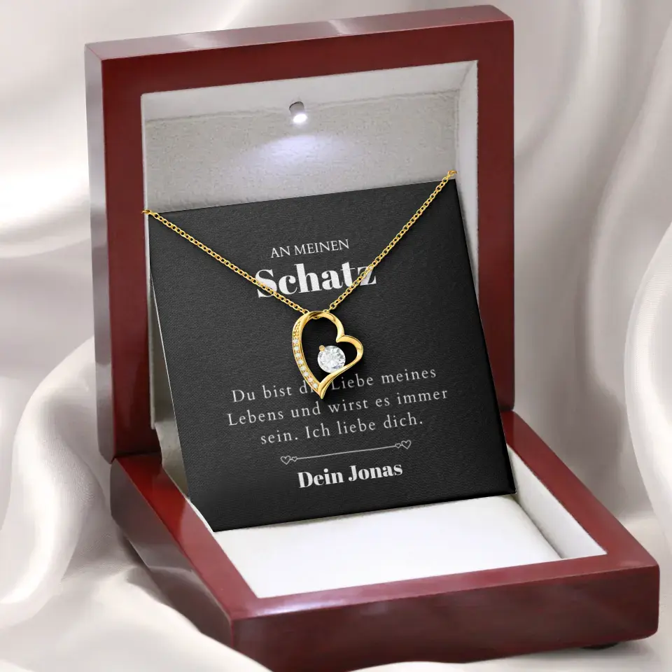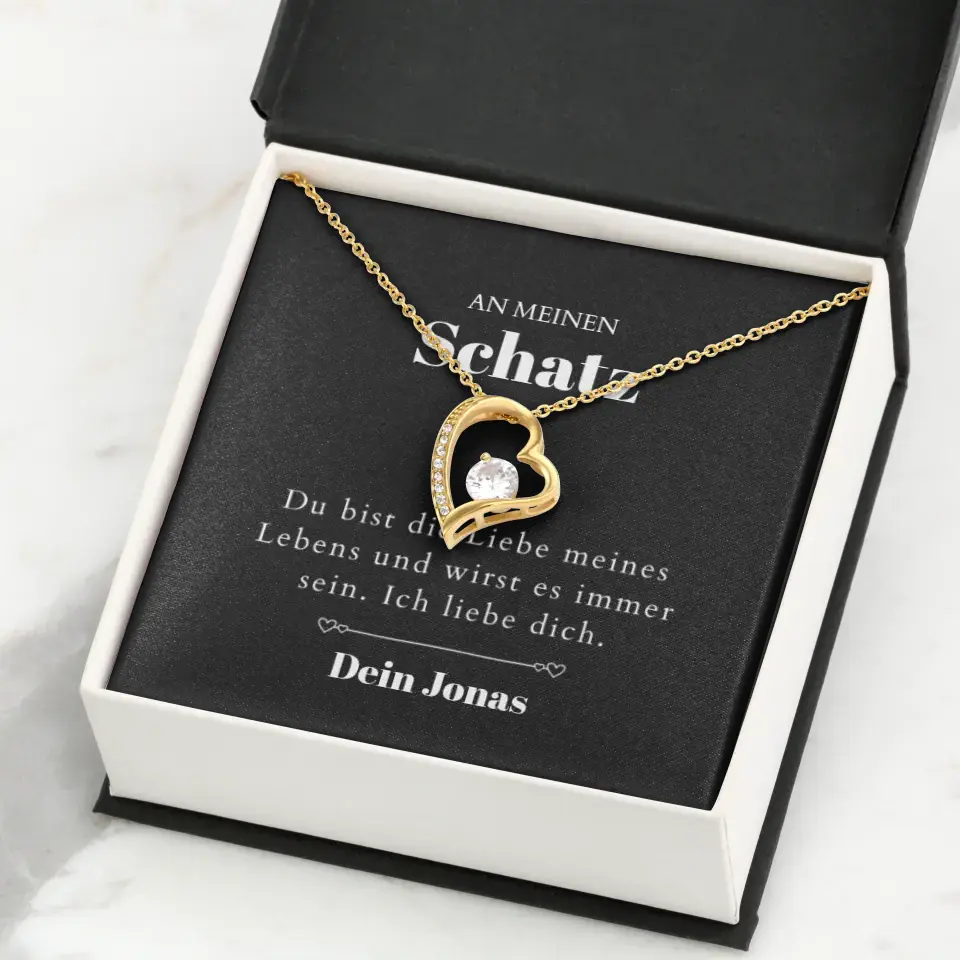 Love of My Life - Ketting met gouden harthanger en gepersonaliseerde kaart (Valentijnsdagcadeau)